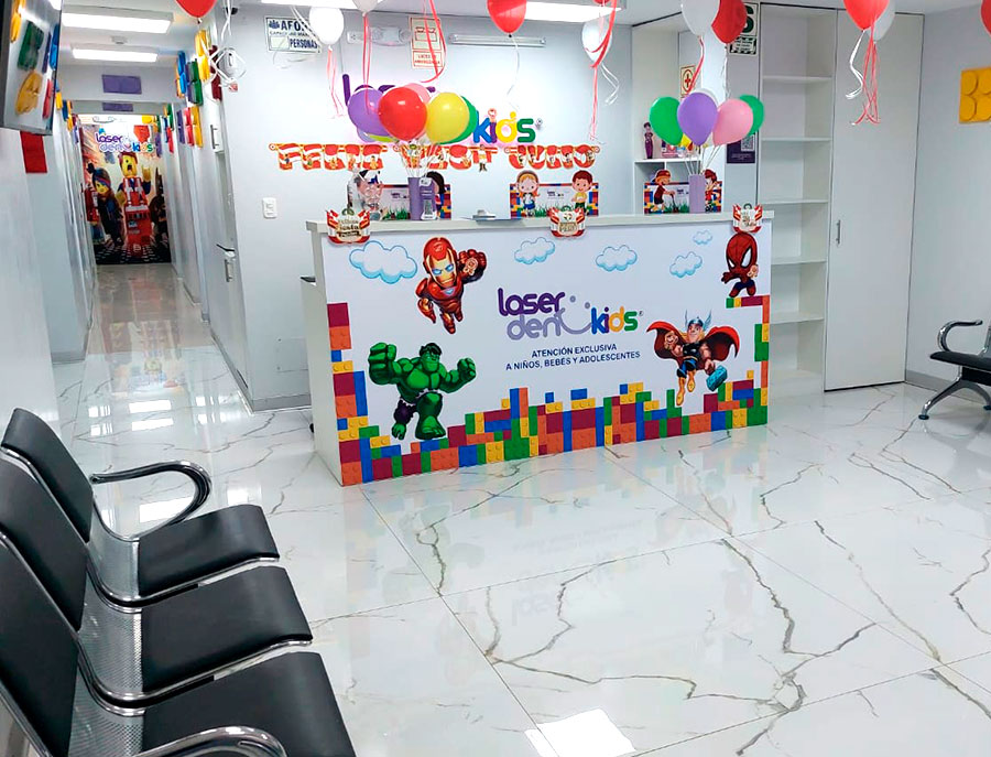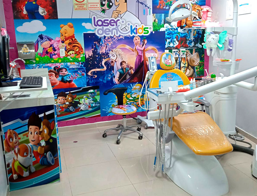 Establecimiento de Salud Dental Laser Dent Kids® cuenta con una amplia sala de espera con juegos y cuentos para niños, consultorios adecuados y ambientados para facilitar la colaboración del niño y que este tenga la mejor de las experiencias, también adecuados para tratamientos de ortodoncia, un centro de esterilización y una sala de personal para el staff.